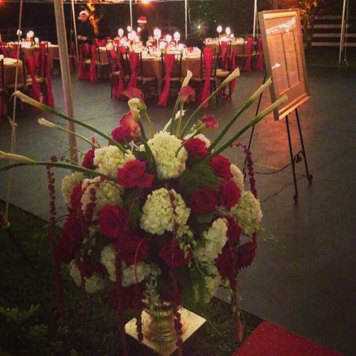 It’s the most wonderful time of the year:) We created the perfect detailed holiday party for our clients annual holiday. We had a huge clear tent, covered it in twinkle lights so guests could still look up at the sky while dining & dancing the night away. We served eggnog & Christmas cookies on the coach buses that transported guests to our clients home. Had a beautiful Christmas elf to great them at the door and hand them a glass of champagne. Next to the main tent were luxury port a potties covered by another tent. Our guests had a lovely sit down dinner, and all place settings had an adorable Christmas menu with candy cane & bow. All of our servers wore Santa hats & provided French service out of bread baskets made to look like Christmas drums. We tied big red velvet bows to the tree swing and added mini Christmas stockings to all of the flags on their mini golf course as well as lighting them up in red & green. We lit up the palm trees & pool with snow flake projections, covered the trees in glitter lights, had a band to perform for guests. For desert we had a #gingerbreadhouse as well as nutcrackers covered in roses & fern, an array of deserts from Christmas tree Rice Krispie treats, Santa hat brownie bites, snowmen & reindeer cake pops, fruit skewer Christmas trees for guests to dip into a chocolate fountain, & of course hot chocolate & #s’mores served by the fire pit. It was such a spectacular party, makes us wish the holidays lasted all year long!