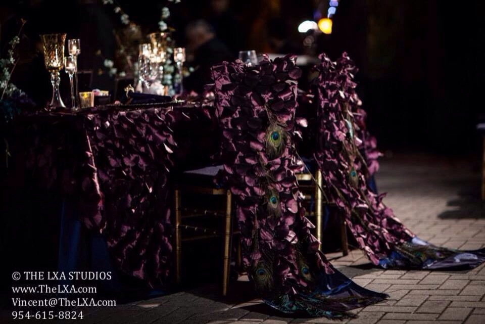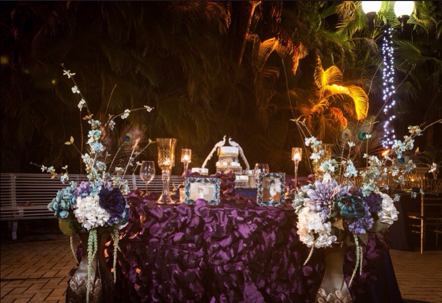 My Peacock Prince and Princess had Peacock Perfection down to every last detail. This award winning costume designing peacock napkin ring making Bride and Groom really outdid themselves! Zori and Daleon were initially referred to me because of my company’s name and my love for peacock’s knowing they were having a Peacock themed wedding. When I first went to see the venue and we saw the wandering peacocks they told me they expected me to find a way to get a peacocks to come over and take pictures with them (being Lady Peacock..no pressure at all!) Check out the pictures below and see the magic that unfolded. This wedding was full of love…love of peacocks and most importantly love for each other! It was fun creative and “Stood Out From The Crowd” with Tassa Drummers, Belly Dancer and ; a surprise Michael Jackson performance from the groom we loved every single moment!